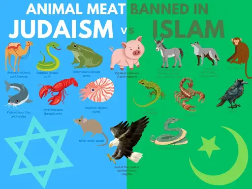 Stamets@lemmy.dbzer0.com to Cool Guides@lemmy.caEnglish · 8 days agoAnimal meats banned in Judaism vs Islamlemmy.dbzer0.comimagemessage-square44fedilinkarrow-up174arrow-down16