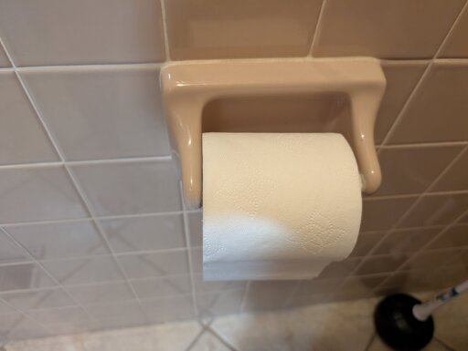 My wife told me she fixed the toilet paper holder. More specifically, “I was tired of dealing with it so I grabbed a hot glue gun, filled that sucker up, and held it in place while the glue cooled.”