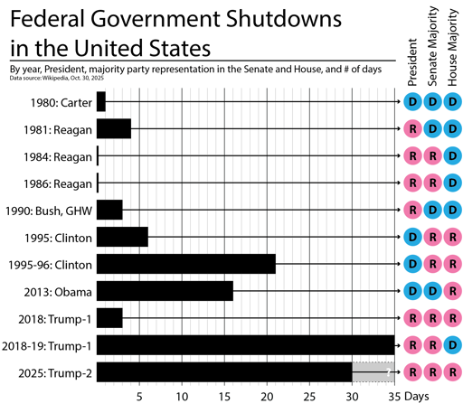 What’s going on with Reagan? Did the government shut down twice for less than a day each time? Or is that supposed to be no shutdowns under Reagan?