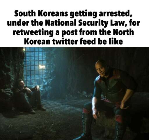the joke is the rock being incarcerated for breaking south korea’s laws; namely the south korean laws about publicly speaking in a favorable manner about north korea