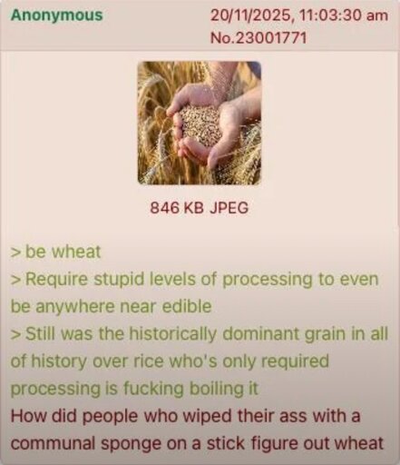 arrow-up1309arrow-down1imageAnon thinks about wheatsh.itjust.worksSine_Fine_Belli@lemmy.world to Science Memes@mander.xyzEnglish · 15 days agomessage-square64linkfedilinkfile-text